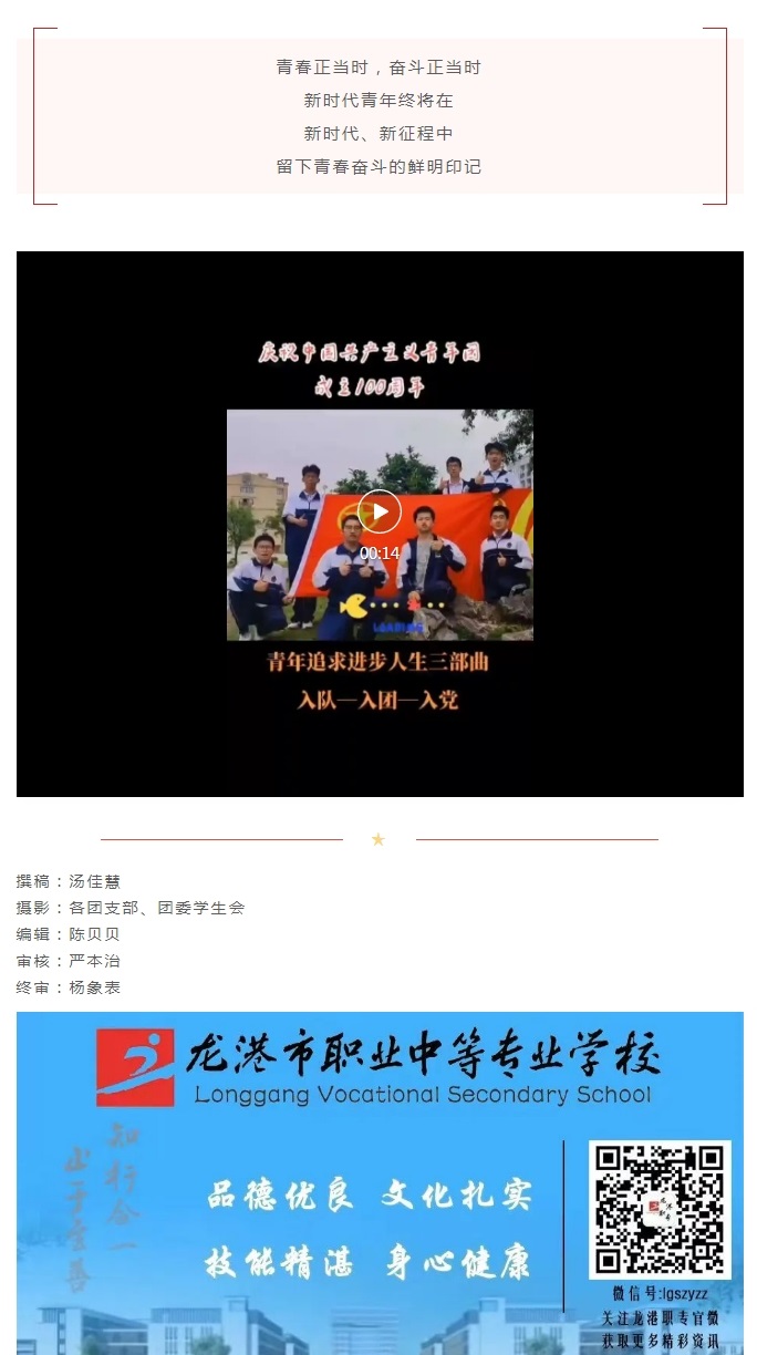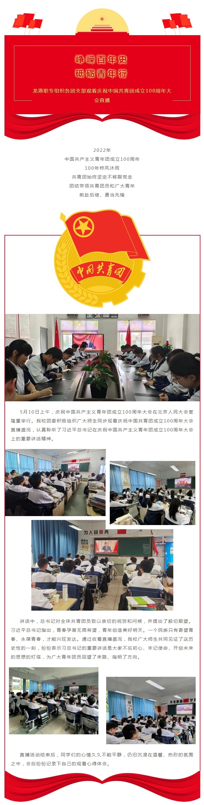 峥嵘百年史 砥砺青年行 | 龙港职专组织各团支部观看庆祝中国共青团成立100周年大会直播