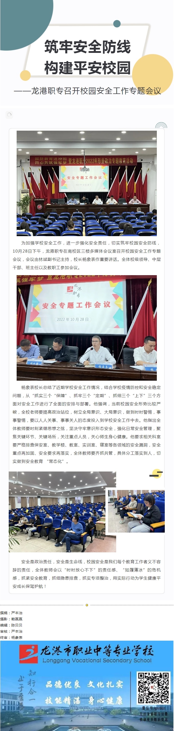 筑牢安全防线 构建平安校园——龙港职专召开校园安全工作专题会议