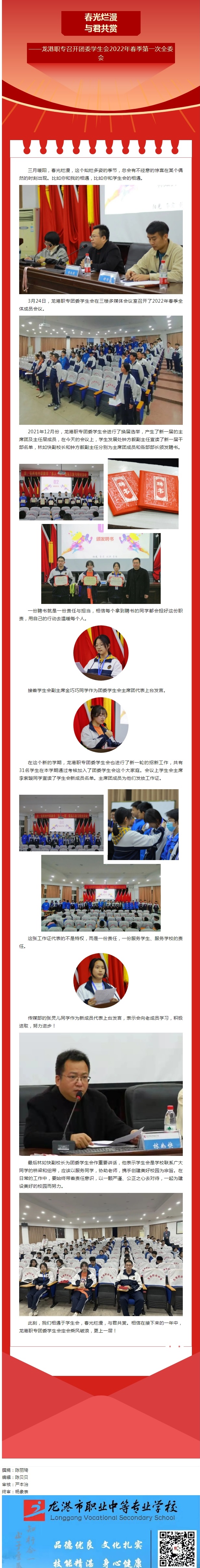 春光烂漫,与君共赏——龙港职专召开团委学生会2022年春季第一次全委会