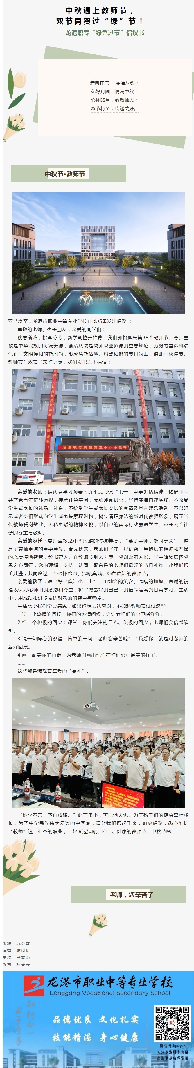 中秋遇上教师节,双节同贺过“绿”节!——龙港职专“绿色过节”倡议书