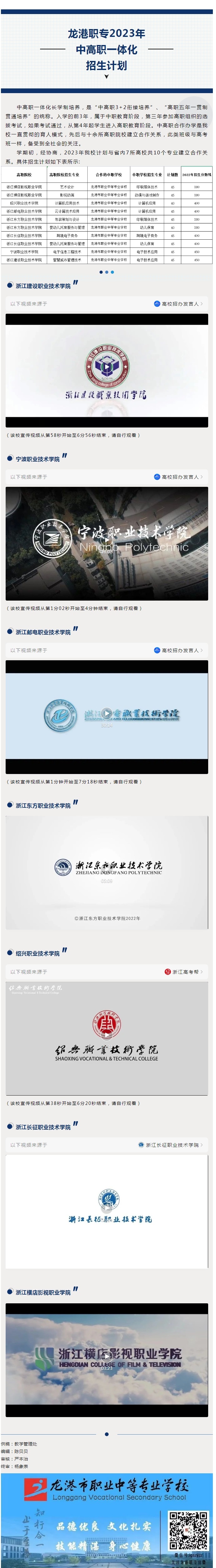 中高职一体化长学制培养,是“中高职3+2衔接培养”、“高职五年一贯制贯通培养”的统称。入学的前3年,属于中职教育阶段,第三年参加高职组织的选拔考试,如果考试通过,从第4年起学生进入高职教育阶段。中高职合作办学是我校一直贯彻的育人模式,先后与十余所高职院校建立合作关系,此类班级与高考班一样,备受到全社会的关注。
