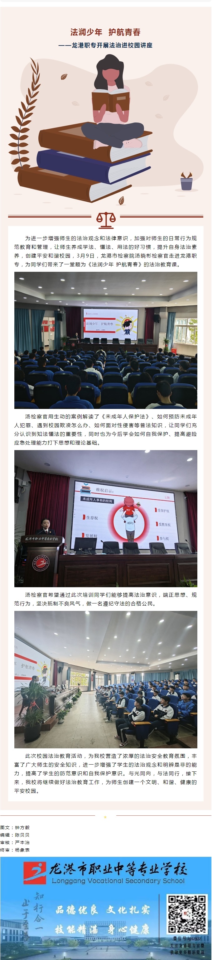 法润少年 护航青春——龙港职专开展法治进校园讲座