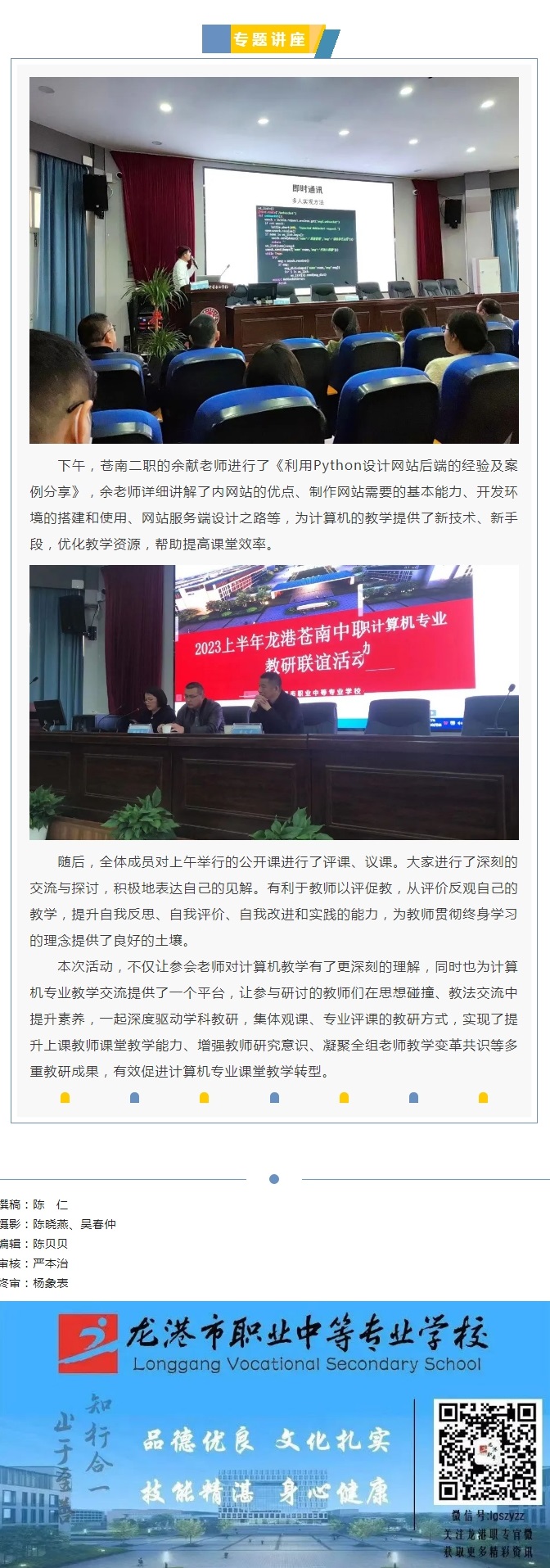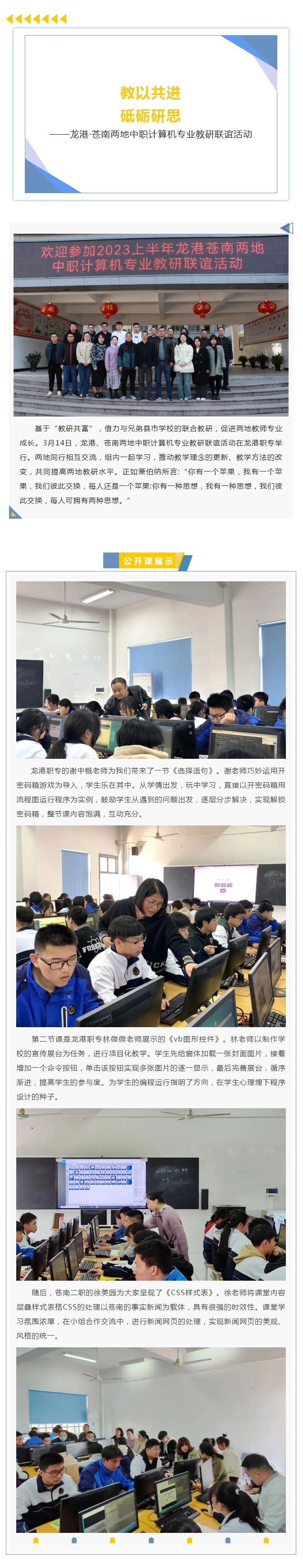 教以共进,砥砺研思——龙港·苍南两地中职计算机专业教研联谊活动