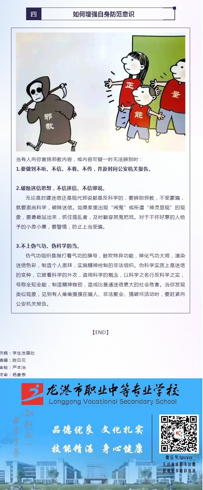 崇尚科学,反对邪教——龙港职专反邪教宣传教育