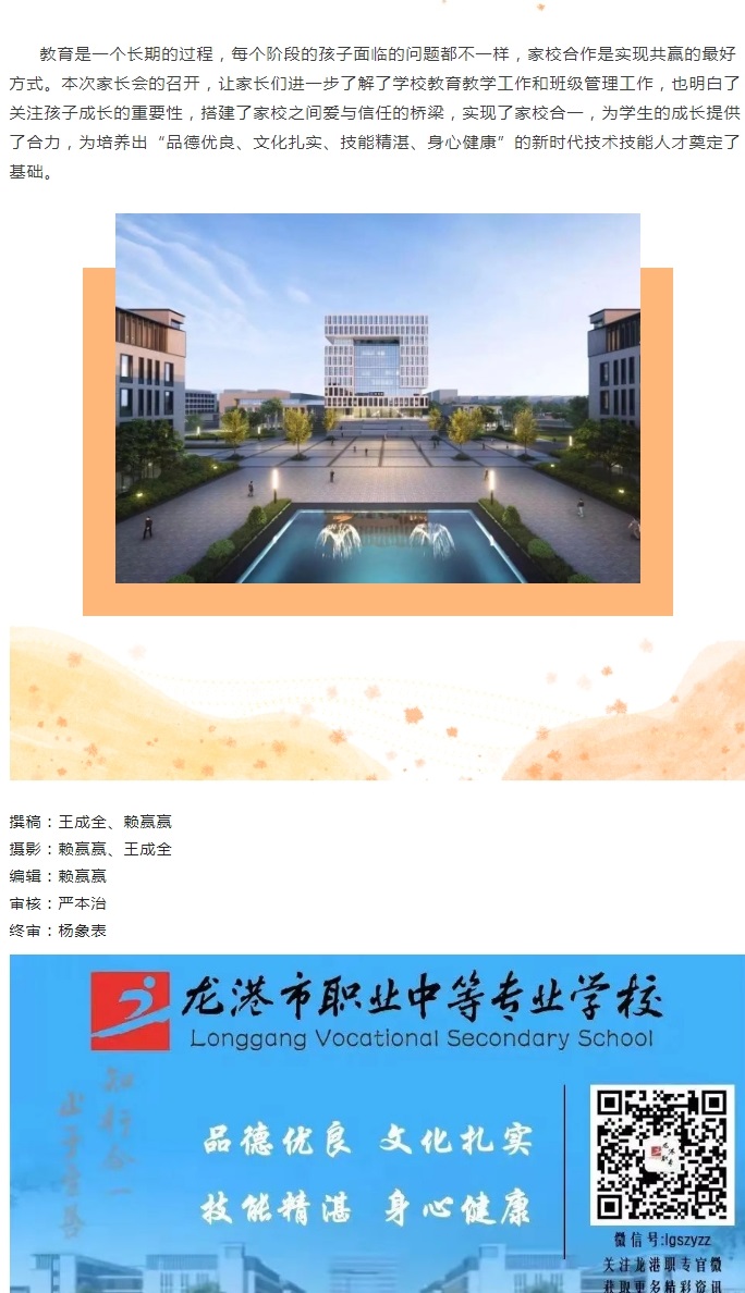 家校沟通凝合力 共筑职教促发展——龙港职专智能制造学部首次家长会