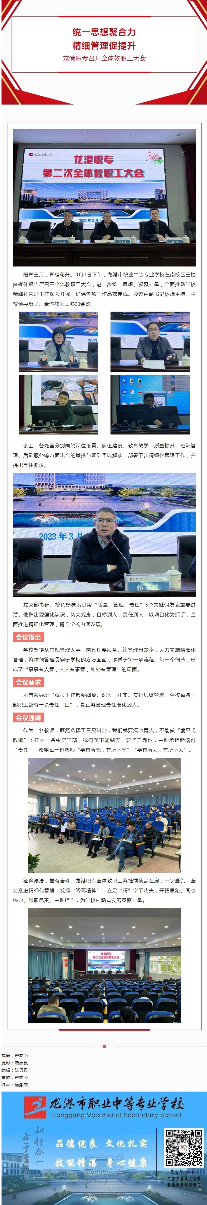 统一思想聚合力 精细管理促提升 | 龙港职专召开全体教职工大会