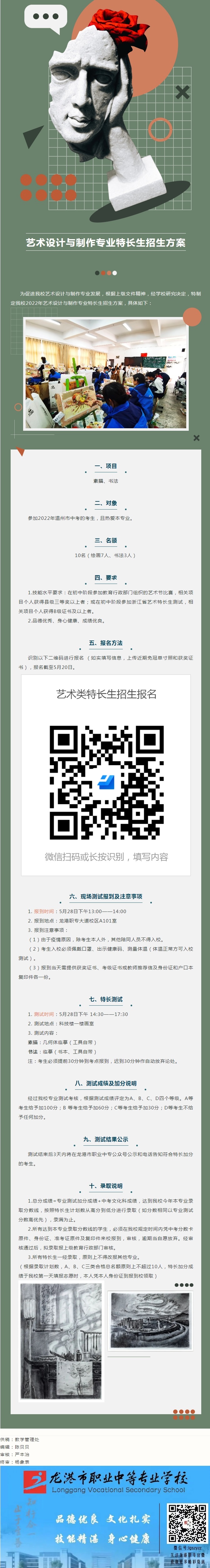 为促进我校艺术设计与制作专业发展,根据上级文件精神,经学校研究决定,特制定我校2022年艺术设计与制作专业特长生招生方案,具体如下: