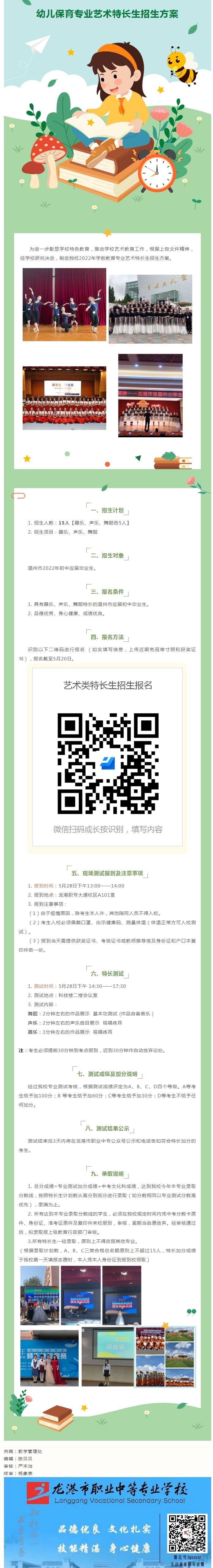 为进一步彰显学校特色教育,推动学校艺术教育工作,根据上级文件精神,经学校研究决定,制定我校2022年学前教育专业艺术特长生招生方案。