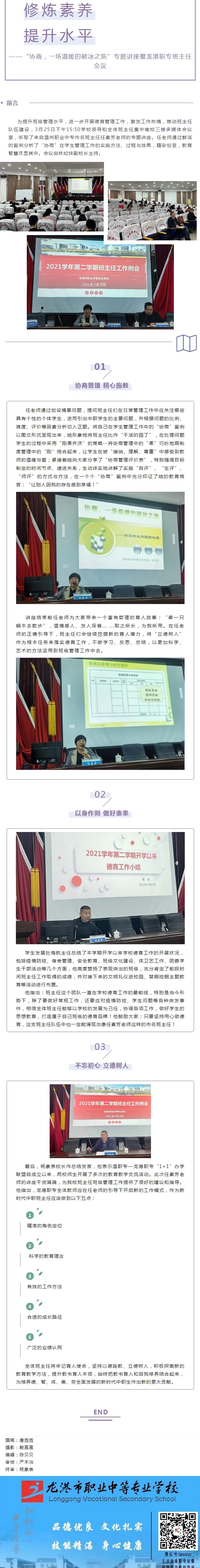 修炼素养,提升水平——“协商,一场温暖的破冰之旅”专题讲座暨龙港职专班主任会议