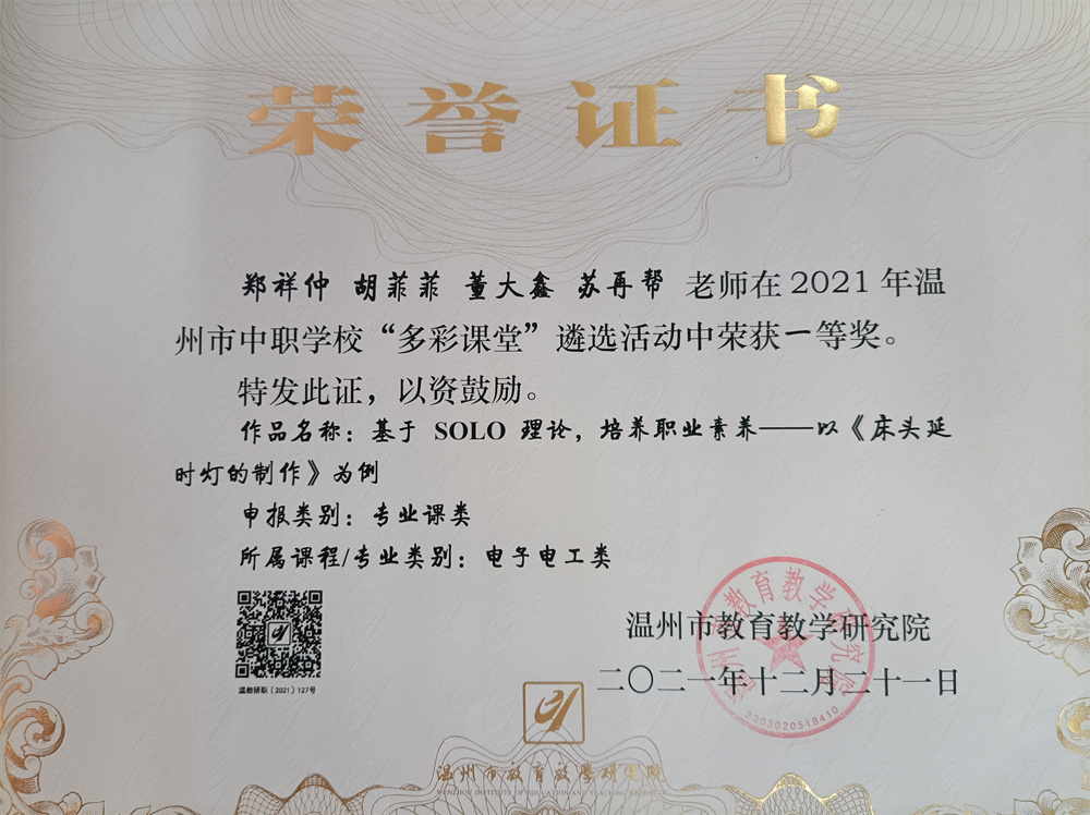 温州市论文评比二等奖......