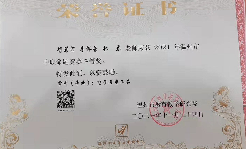 胡菲菲 林磊 李佩蕾温州市命题竞赛二等奖