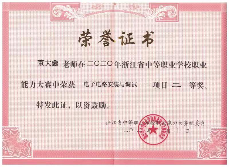 董大鑫省职业能力大赛二等奖