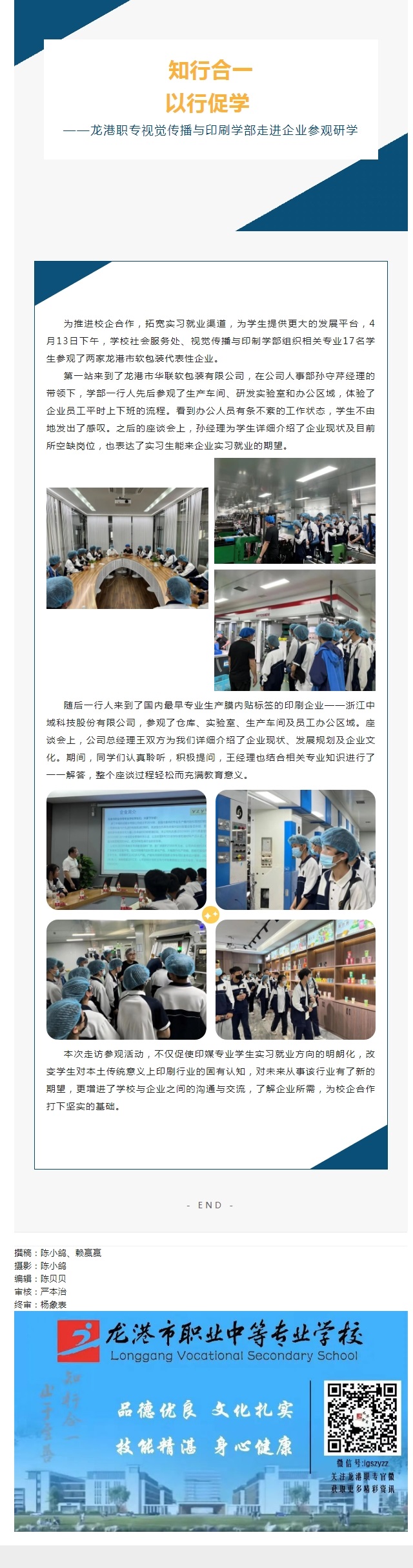 知行合一 以行促学——龙港职专视觉传播与印刷学部走进企业参观研学