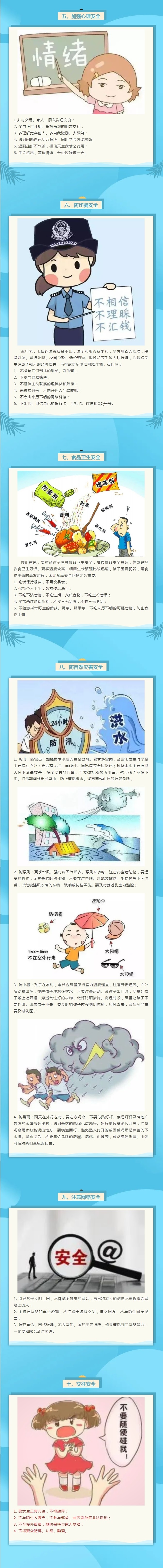 暑假生活即将开始,我们诚挚地希望您,在假期里切实承担起孩子监护人的责任,使孩子在家能度过一个安全、祥和、幸福快乐而又有意义的假期。现将学校假期安全教育有关要求告知如下: