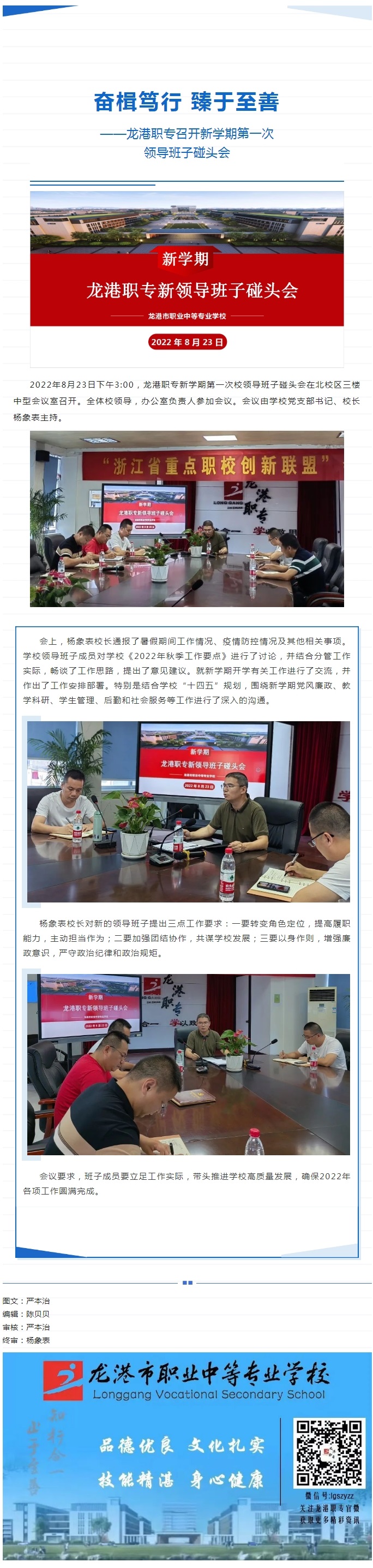 奋楫笃行 臻于至善——龙港职专召开新学期第一次领导班子碰头会