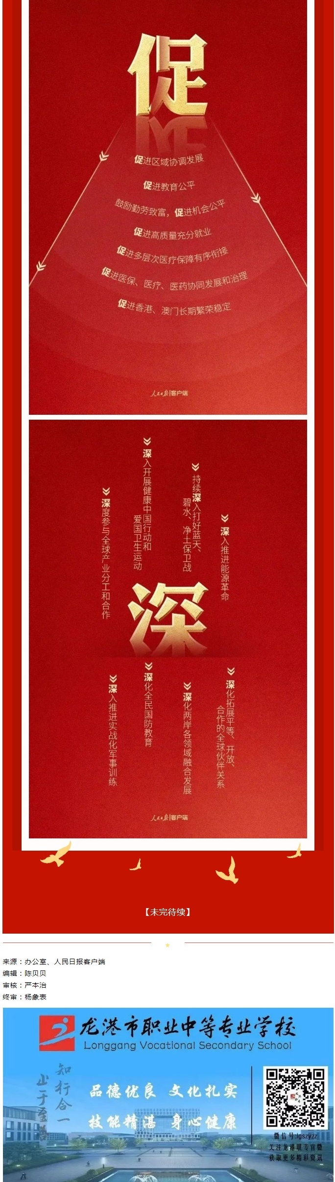 新思想引领新时代,新使命开启新征程。党的二十大是在全党全国各族人民迈上全面建设社会主义现代化国家新征程、向第二个百年奋斗目标进军的关键时刻召开的一次十分重要的大会。学习宣传贯彻好党的二十大精神,是当前和今后一段时期的首要政治任务。为切实推动广大师生深入学习宣传贯彻党的二十大精神,持续推进习近平新时代中国特色社会主义思想进教材、进课堂、进头脑,学校公众号平台现开设“学习党的二十大,争做学习弄潮儿”专栏,专题推送党的二十大精神学习辅导材料,组织广大师生原原本本、原汁原味学习贯彻好“党的二十大精神”,激励全校师生踔厉奋发、勇毅前行、团结奋斗,持续书写好龙港职专职业教育新篇章,为全面建设社会主义现代化国家、全面推进中华民族伟大复兴贡献力量!
