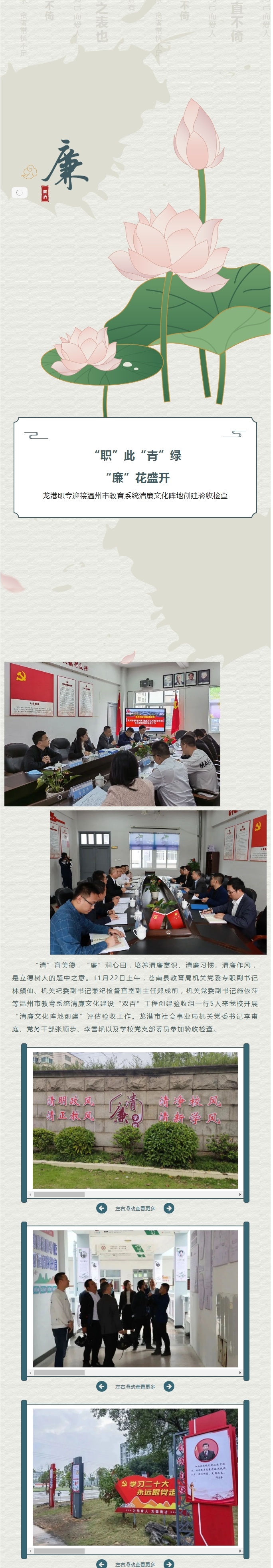 “职”此“青”绿 “廉”花盛开 | 龙港职专迎接温州市教育系统清廉文化阵地创建验收检查