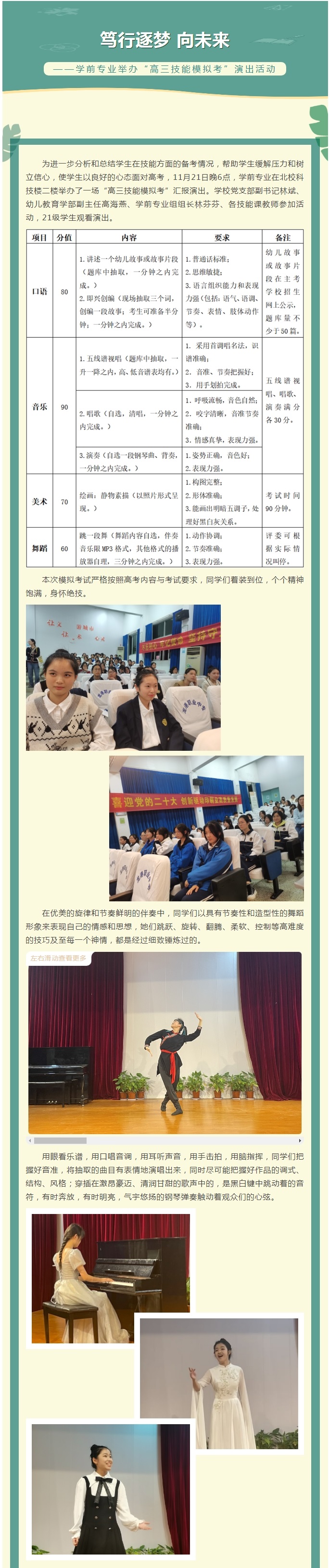 笃行逐梦 向未来——学前专业举办“高三技能模拟考”演出活动