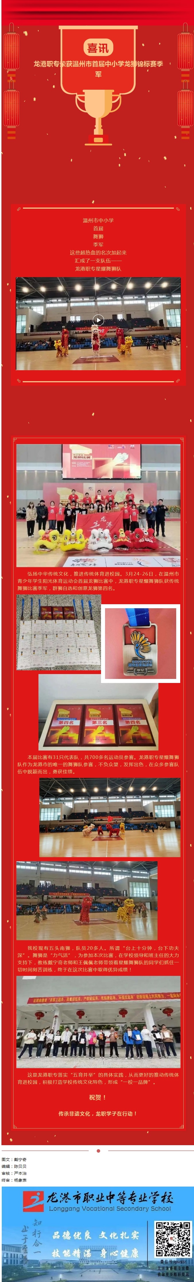 喜讯!龙港职专荣获温州市首届中小学龙狮锦标赛季军