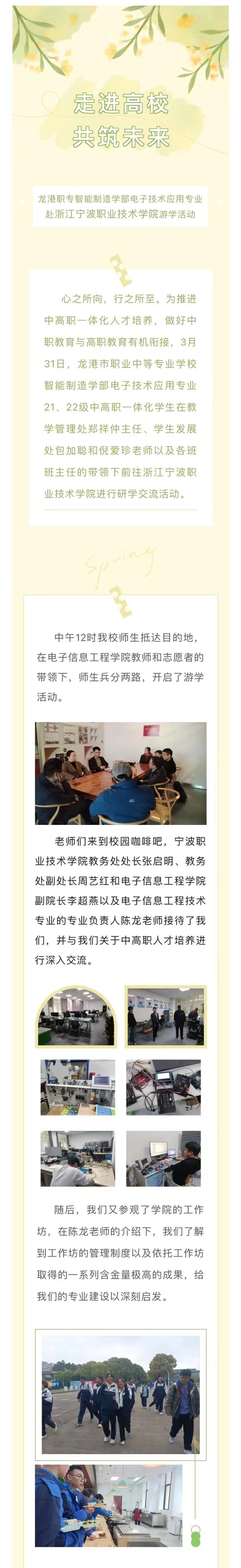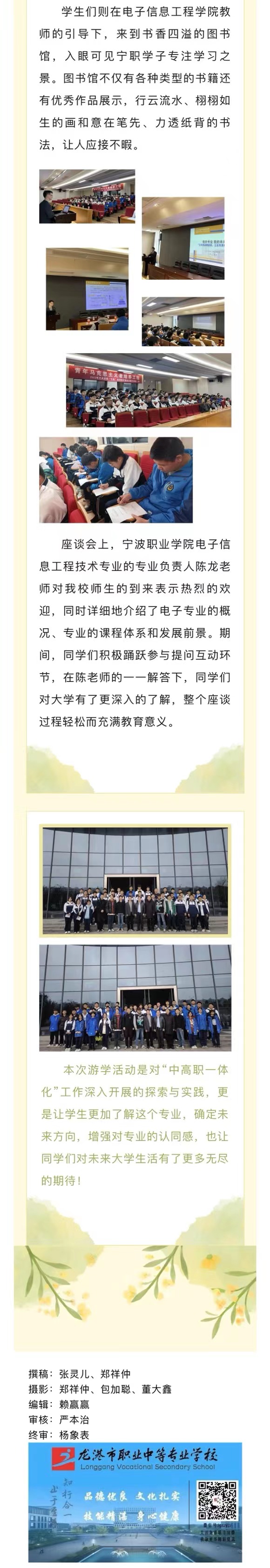 走进高校 共筑未来——龙港职专智能制造学部电子技术应用专业赴浙江宁波职业技术学院游学活动