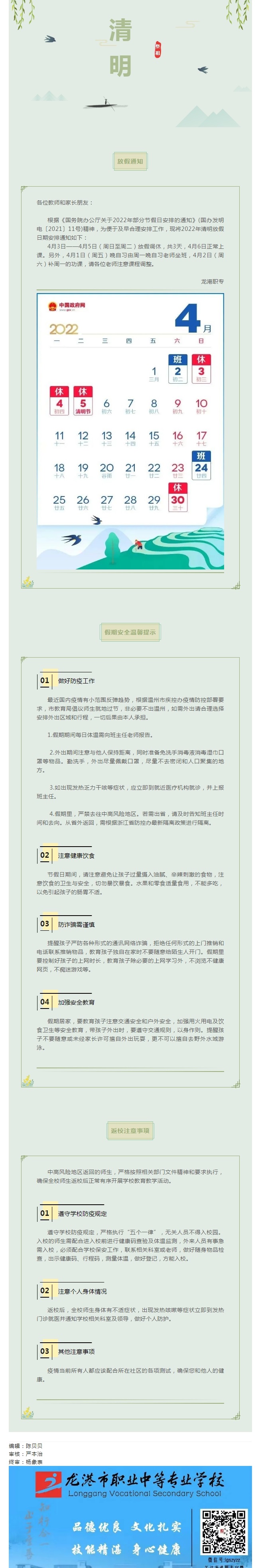 2022年龙港职专清明节放假通知